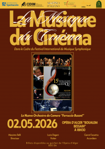 Nel quadro del Festival Internazionale, l’Istituto Italiano di Cultura di Algeri ha il piacere di presentare il concerto «La Musica del Cinema: da Astor Piazzolla a Ennio Morricone», che si terrà sabato 2 maggio 2026 presso l’Opéra d’Alger – Boualem Bessaih. La serata sarà animata dal Nouvel Orchestre de Chambre «Ferruccio Busoni», diretto dal Maestro […]